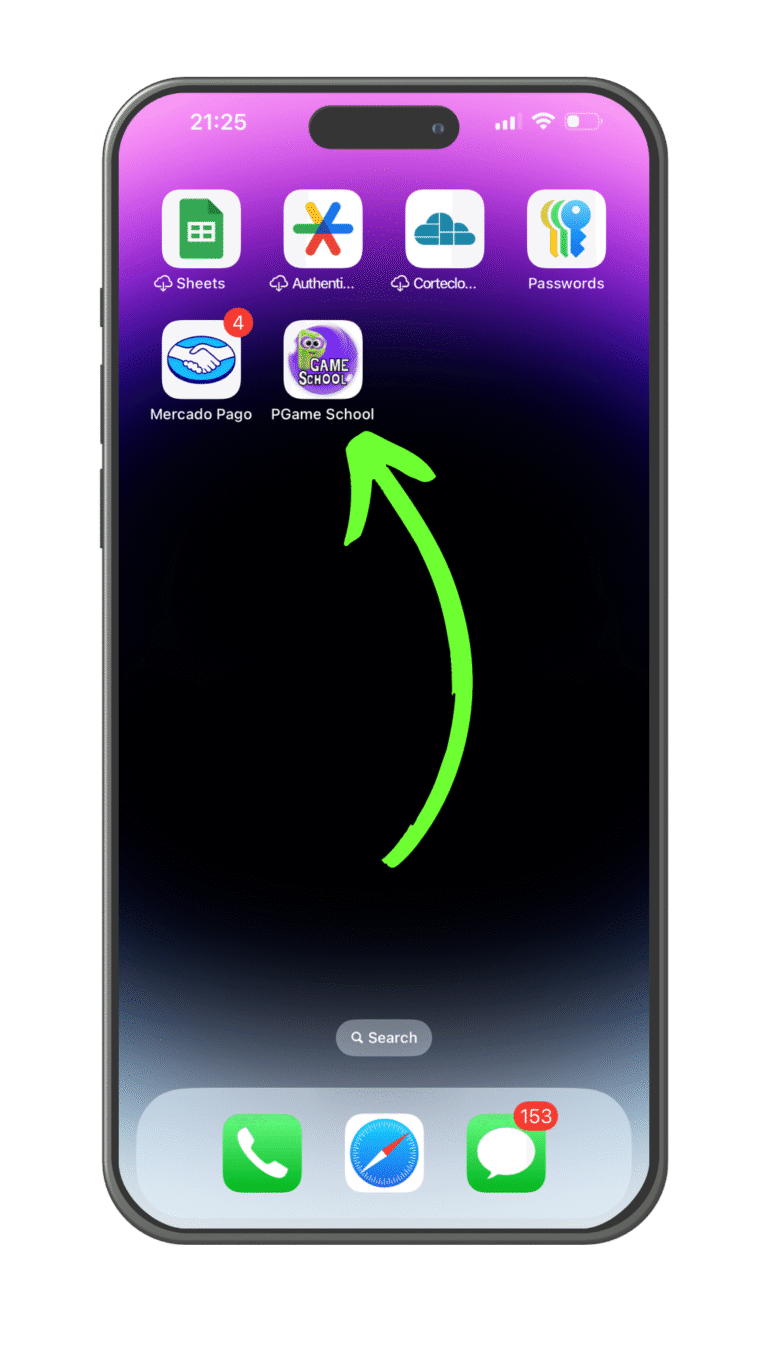 O ícone da PGame School aparecerá na tela inicial do seu celular, como um aplicativo normal.